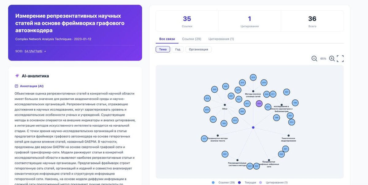 📊 Расширяем возможности анализа научных связей — граф цитирований стал еще более информативным. 🧠 Кластеры в графе цитирований 🔹 Теперь в графе цитирований формируются тематические кластеры («пучки»), отражающие группы взаимосвязанных исследований 🔹 Это позволяет быстрее выявлять ключевые направления внутри области 🔗 Консолидация крупных кластеров 🔹 Если пучок становится слишком большим, он автоматически агрегируется в отдельный кластер 🔹 Это улучшает читаемость и упрощает навигацию по графу ⚙️ Технические работы 🔹 Сегодня с 17:00 до 19:00 сервис будет временно недоступен 🔹 Проводим обновление инфраструктуры для поддержки новых возможностей Делаем анализ научных связей более структурированным. scid.ai