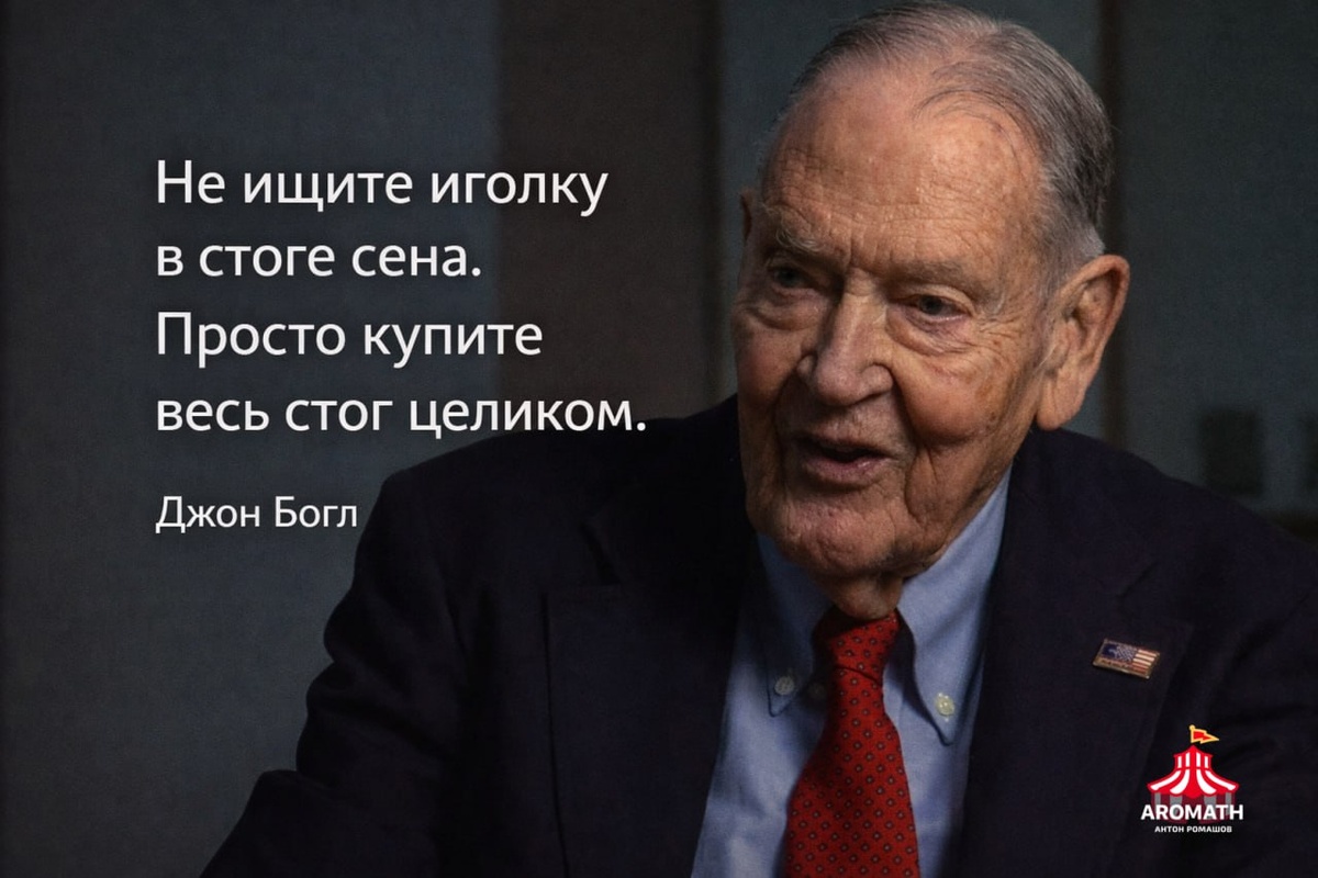 Если Грэм научил нас считать, а Баффет - ждать, то Джон Богл научил нас не кормить посредников. Он совершил революцию, создав первый в мире индексный фонд и доказав, что простота и низкие издержки бьют любые сложные стратегии на длинной дистанции. Его философия честности и здравого смысла - это важная часть того, на чем стоит метод Фундаментальный Психотрейдинг 🎓 АРОМАТ. Джон Богл - основатель инвестиционной группы The Vanguard Group. Период активной деятельности: 1951–2019 годы. Главная заслуга: создание индексного фонда для частных инвесторов. Сэкономил инвесторам триллионы долларов на комиссиях. 📍 В чём суть подхода Богла? Богл считал, что не нужно искать иголку в стоге сена (выбирать отдельные акции) - нужно просто купить весь стог (весь рынок). Он фанатично боролся за снижение комиссий, потому что в инвестициях Вы получаете то, за что НЕ платите. Верил в силу времени и сложного процента больше, чем в талант управляющих. 📚 Книги и наследие Джона Богла: "Руководство разумного