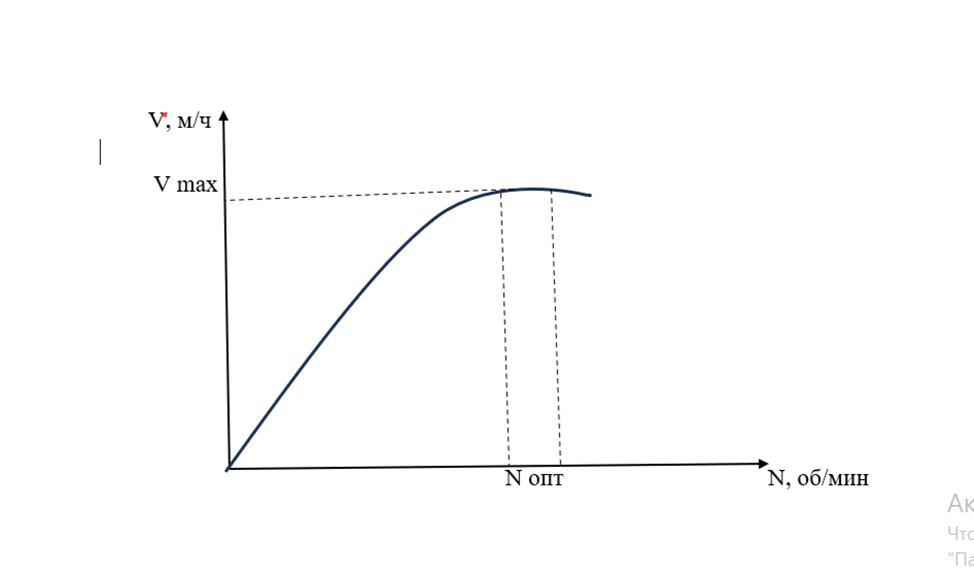 Итак, по мере увеличения частоты вращения долота, механическая скорость бурения растет и достигает своего максимума. При дальнейшем увеличении частоты вращения долота, механическая скорость бурения не возрастает (остается постоянной) и, в конце концов, начинает снижаться.
