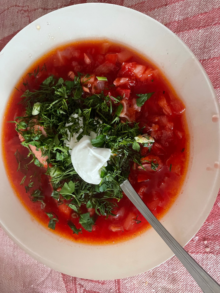 Почему для внучки? Потому что ей всего полтора года и все ингредиенты должны быть более - менее мелко порезаны. Хотя я всегда любила овощи для борща нарезать соломкой и готовить альденте - на зубок. Но для себя уже как нравится не по готовишь, каждому как нравится по порции - это целый день можно готовить . Поэтому ориентируемся на ребенка, на его вкусы и предпочтения