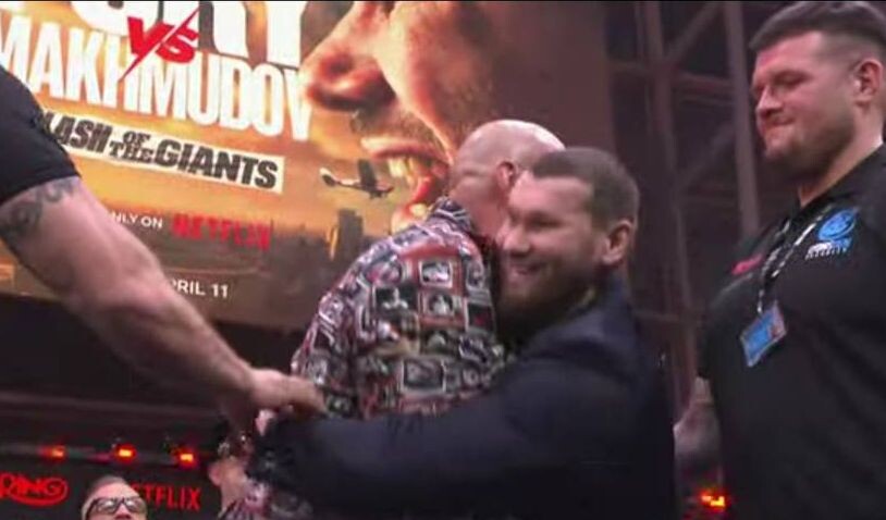Бывший чемпион мира по версиям WBC, WBO, IBO, WBA Super, The Ring, IBF в супертяжёлой весовой категории британец Тайсон Фьюри обнялся с действующим обладателем титула WBA Inter-Continental в супертяжёлом весе россиянином Арсланбеком Махмудовым во время битвы взглядов. Их бой состоится 12 апреля в Лондоне. Арсланбеку Махмудову 36 лет. Россиянин дебютировал как профессионал в 2017 году. Большинство поединков провёл на территории Канады. В своём последнем бою, состоявшемся в октябре, победил единогласным решением британца Дэвида Аллена. Тайсону 37 лет. В своём профессиональном рекорде британец имеет 34 победы, из которых 24 были одержаны нокаутом, два поражения, а ещё один бой был признан ничьей.
