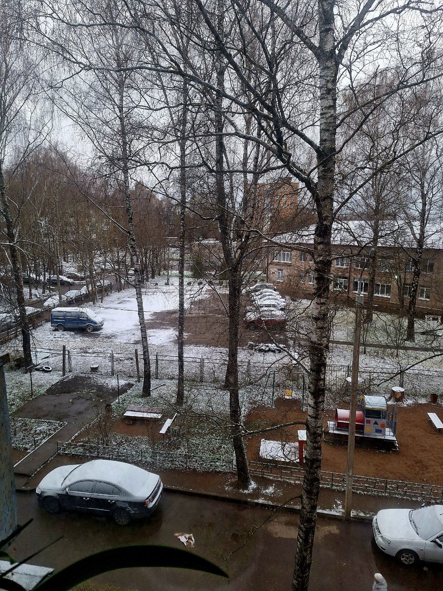 Снег с дождём идет, берёзу около соседнего подъезда пилят- опилки на клумбы с замёрзшими цветами летят...