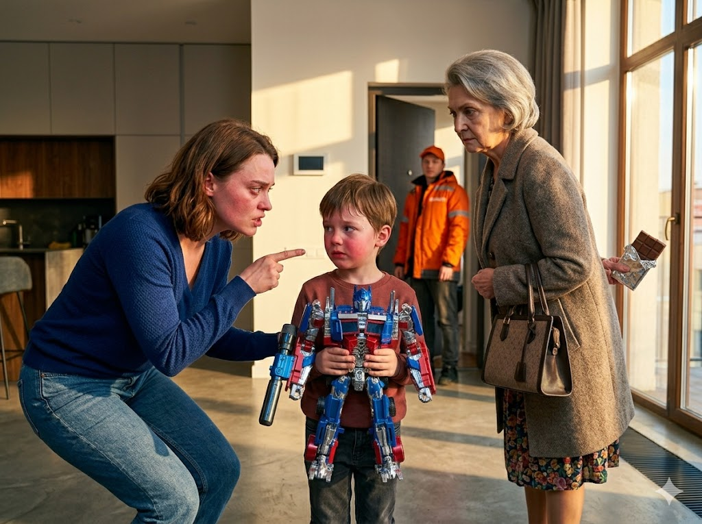 — Дим, а откуда у тебя этот робот-трансформер? Мы же договаривались, что купим его только на день рождения, — я присела на корточки перед сыном, который увлеченно крутил в руках блестящую пластиковую игрушку.