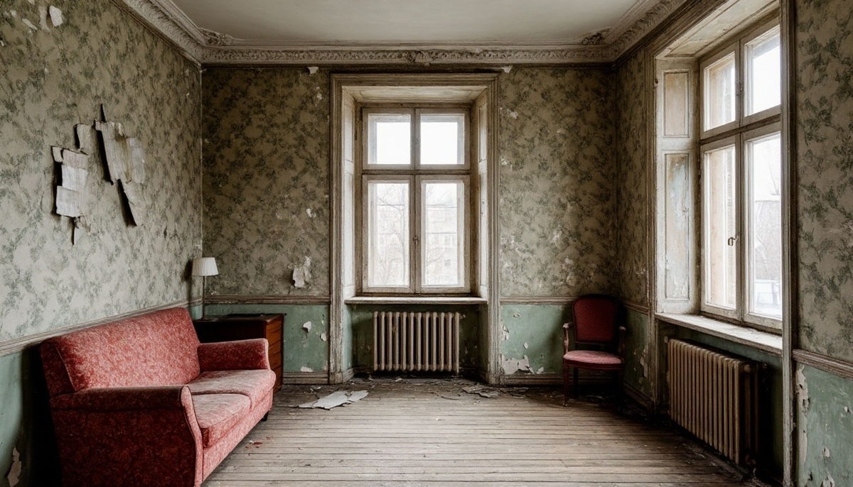 Квартира казалась очень запущенной. Местами обои отходили целыми полосами, с потолка сыпалась штукатурка, а там, где не сыпалась, она казалась не белой, а тёмно-серой. Окна, из иссохших рам которых стёкла так и норовили выпрыгнуть, наверное, ровесники этого старого обшарпанного трёхэтажного дома, когда-то модной «сталинской» планировки.