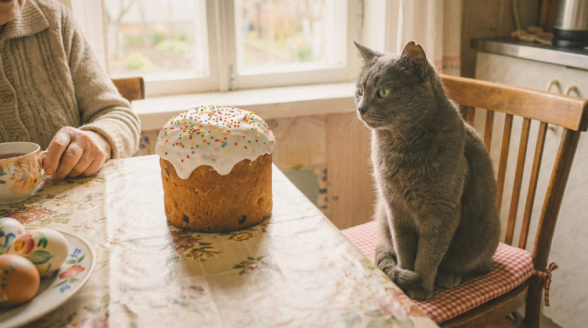 Они сели за стол. Бабушка перекрестилась, разломила кулич, положила Даше кусок. Даша смотрела на бабушку, на кота, на этот стол на троих, и что-то у неё внутри сжималось.