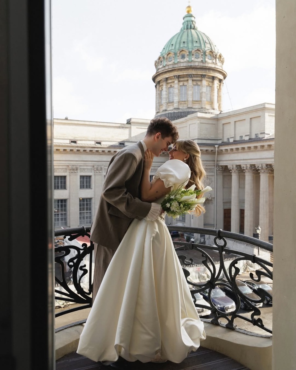 Анна Покров поделились новыми кадрами со своей свадьбы с Артуром Бабичем. Пара расписалась 6 апреля 2026 года. Блогеры решили узаконить свои отношения в Санкт-Петербурге. На новых снимках молодожены были запечатлены в номере отеле. Они позировали на балконе с видом на Исаакиевский собор. Также пара снялась в загсе, в одном из музеев и во время прогулки по городу. Для торжества 26-летняя Покров выбрала атласное белоснежное платье, состоящее из юбки длины миди и корсета с декольте и короткими объемными рукавами. Стилисты завили ей волосы в легкие кудри, часть из них собрали сзади, а по бокам у лица уложили челку. Визажисты сделали звезде нежный макияж. 25-летний Бабич для бракосочетания надел серый костюм и белую рубашку с кружевными манжетами. «06.04.2026. И впереди только любовь…» — подписала фото Покров. Пару поздравили с важным днем и пожелали им счастливой семейной жизни. «Сказка! Будьте счастливы», «Как красиво», «Как же я за вас рада! Будьте счастливы», «Очень красивые и счастливы