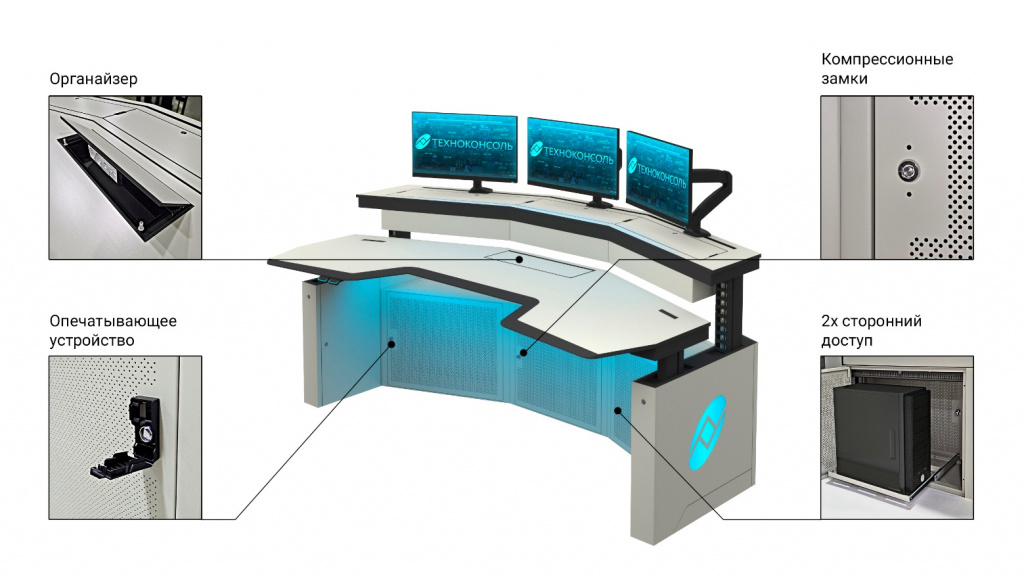 В современных диспетчерских пультах технологический отсек это не просто свободное пространство для размещения оборудования, а продуманная инженерно-организованная система. Каждая сервисная зона здесь имеет понятную логику доступа, размещения и защиты.