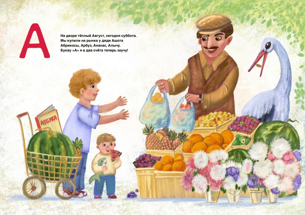 "У меня есть мечта! Я очень хочу издать свою Вкусную азбуку! С уютными и тёплыми, иллюстрациями Светланы Беловой ароматными, как бабушкины пирожки. Хочу подарить детям книжку, которая поможет запомнить буквы не только через звуковые и зрительные образы, но ещё и через вкус, обоняние и даже осязание! Ведь каждая буква имеет свой особенный вкус и «Б» (Блины, Борщ, Булка), это совсем не то же самое, что «Н» (Наггеты, Нектарины и «Наполеон»). 😉 Издатели, мы ждём ваших предложений!" Выкладываю несколько любимых стихотворений из Азбуки. А На дворе тёплый Август, сегодня суббота. Мы купили на рынке у дяди Ашота Абрикосы, Арбуз, Ананас, Алычу. Букву «А» я в два счёта теперь заучу! Б Напекла Блинов Бабуля, На плите Борща кастрюля, Булка сдобная пышна – Очень буква «Б» вкусна! В Вишня Ведёрко заполнила новое – Варенька сварит Варенье Вишнёвое, Или Вареники, или Ватрушки Сделает Варя для брата Ванюшки. Г Буква «Г» (гэ) окунулась в стакан с Газировкой, На тарелочку с Грушами прыгнула ловко, Голуб