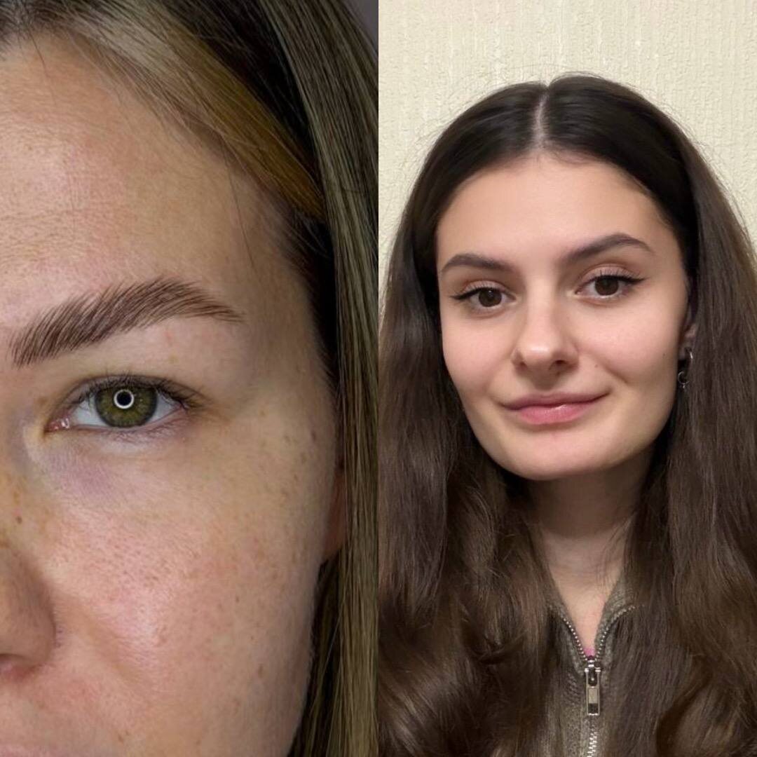 На фото: Ламинирование бровей ( коррекция, окрашивание включены )