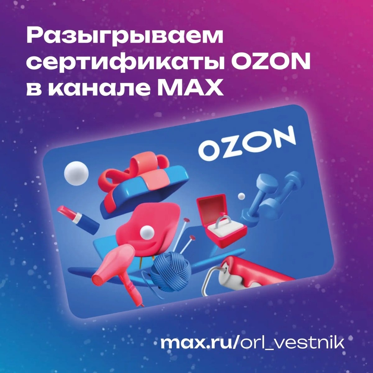 В канале «Орловского вестника» в МАХ проходит розыгрыш, в котором можно получить один из трех сертификатов в OZON номиналом в 1000 рублей