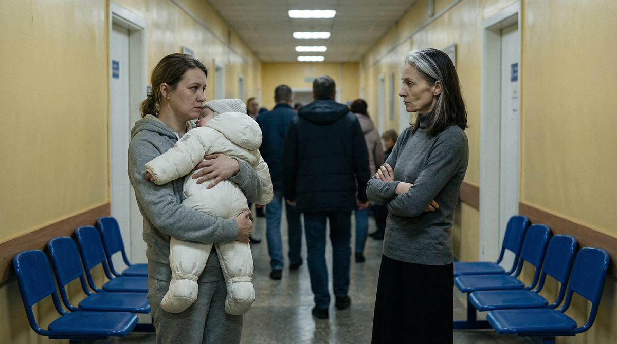 Детская поликлиника номер пять пахла. Это был не один запах, а густой, тяжелый коктейль: резкий антисептик, сладковатый сироп от кашля, влажная шерсть сотен детских комбинезонов и под всем этим едва уловимая нота отчаяния уставших матерей. Мы сидели на пластиковой скамье цвета увядшей горчицы. Я была сорок первой в списке, на табло мигала цифра "23". Семён уснул у меня на руках, его горячий лобик прилип к моей шее. Я смотрела на потрескавшийся линолеум на полу, по которому бегали дети, и думала, что время здесь течет иначе. Не минутами, а приступами терпения. Вот женщина напротив пятый раз вытирает нос своему капризничающему сыну. Вот мужчина в углу отчаянно трясет погремушку. Скрип дверей, плач, гул голосов, все это сливалось в один непрерывный шумовой фон, белый шум моего нового бытия.