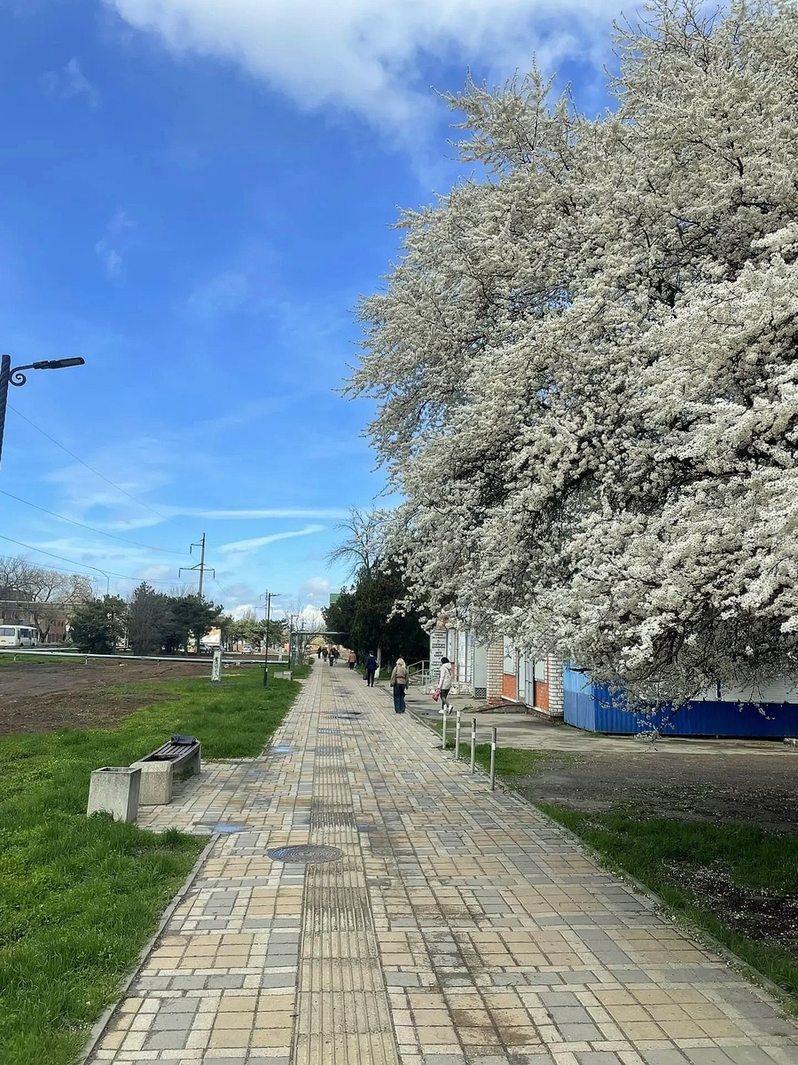 Апрель в Ейске — это не календарь, а наркотик. Всё цветёт, зеленеет и пахнет так, что хочется дышать в два раза глубже. Из почек вылезли крохотные листочки, кусты оделись в нежные наряды, нарциссы гордо торчат из клумб, а плодовые деревья стоят в бело-розовой дымке. Город использует их как часть озеленения, и это гениально: идёшь по улице — а вокруг аромат, будто в чайной лавке.