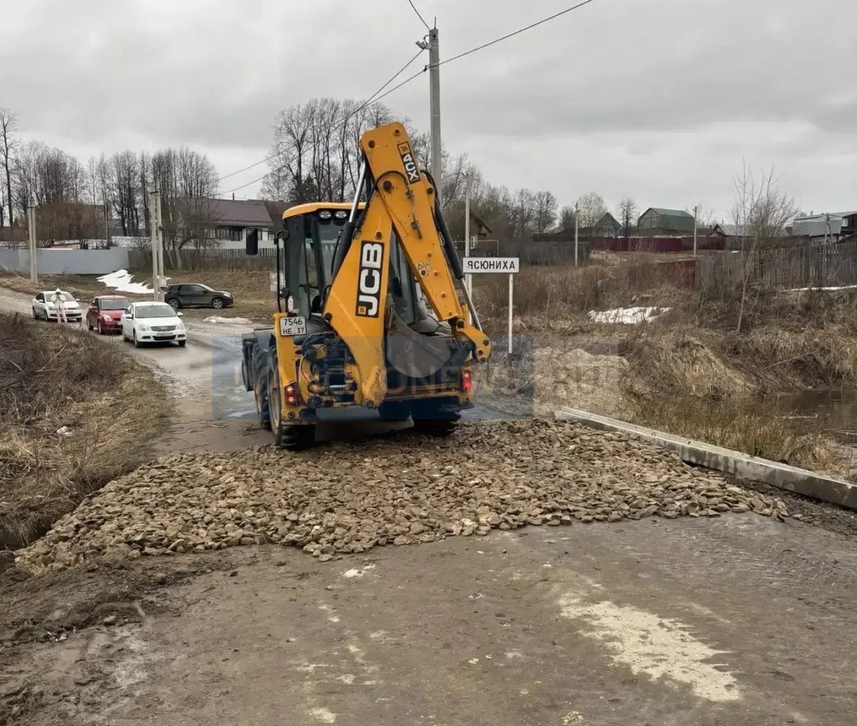 Утром 9 апреля возле деревни Ясюниха из-за паводка и обильных осадков обвалился переезд через реку. Проехать к населенному пункту со стороны Загородного шоссе было невозможно. В деревне живет почти 200 человек. Была установлена временная переправа, строительная организация очистила вход и выход водоотводной трубы. К вечеру участок обрушения засыпали гравием. В администрации Ивановского округа также сообщили, что 10 апреля дополнительно подсыпят гравием резервный путь через Новое Калачево. Маршрут школьного автобуса меняться не будет, т.к. он забирает детей с Загородного шоссе, не заезжая в деревню.