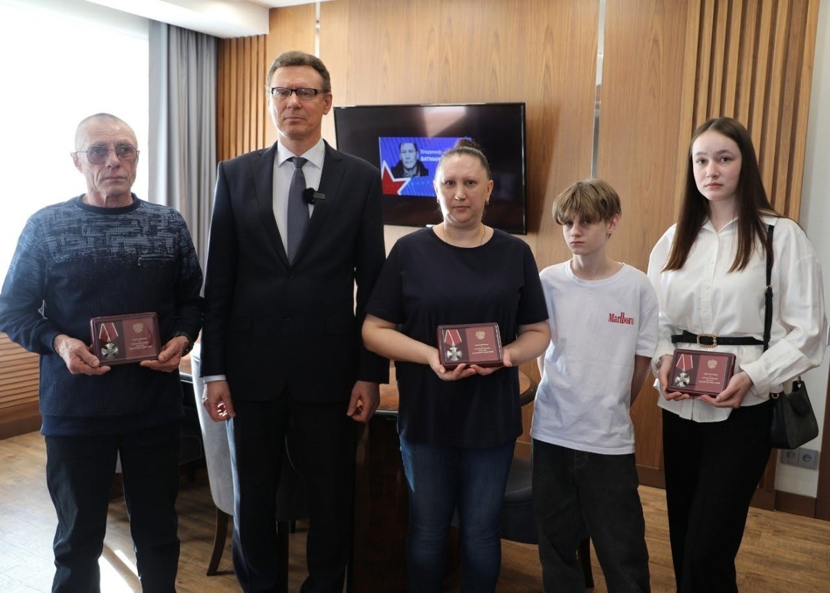 Награды, присвоенные посмертно участникам СВО, передал глава муниципалитета Олег Попов. Ордена получили семьи Дмитрия Носкина, Ивана Стряпкова, Дмитрия Истомина и Владимира Батманова. Их судьбы связаны с разными сёлами района: Носкин жил в Азовах, Стряпков — в Горках, Истомин родился в Шурышкарах, Батманов — в Мужах. Государственные награды вручили их близким — матери, отцу, супруге и дочери. «Это настоящие мужчины, патриоты своей страны, которые не испугались взять на себя ответственность за её будущее. Вечная память воинам, отдавшим жизни за правду и справедливость!» — написал Олег Попов. Фото: Telegram-канал Олега Попова