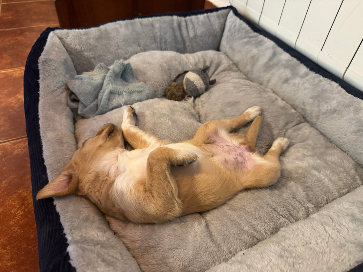 Давно про нашу животину не писала, а, между тем, с нашими питомцами все время происходит что-то интересное. Наша щенуля Канела подросла. Пока больше похожа на своего папу (немецкий бракко), от мамы (бордер-колли) вообще ничего. Характер у нее своеобразный. Мы пока к нему приспосабливаемся, ищем ключик. Но забавная она невероятно. А в каких она позах спит... это вообще песня! Не могу удержаться - беру телефон, подкрадываюсь и фотографирую, прыская со смеху. Причем, полет фантазии у нее для выбора поз неисчерпаемый. Творческая личность растет. На кончике хвоста у нее оказалась настоящая кисточка. Причем, не просто белый кончик, а кончик с кисточкой. Очень забавный. Котята тоже выросли. Густаво превратился в красивого кота с мраморными разводами на боках и яркими полосами на спине и на лапах. Загляденье! Очень интересный у него характер. Поначалу из людей он признавал только нас, при появлении посторонних прятался в панике. Постепенно привык, что к нам вечно кто-то заходит и прятаться пер