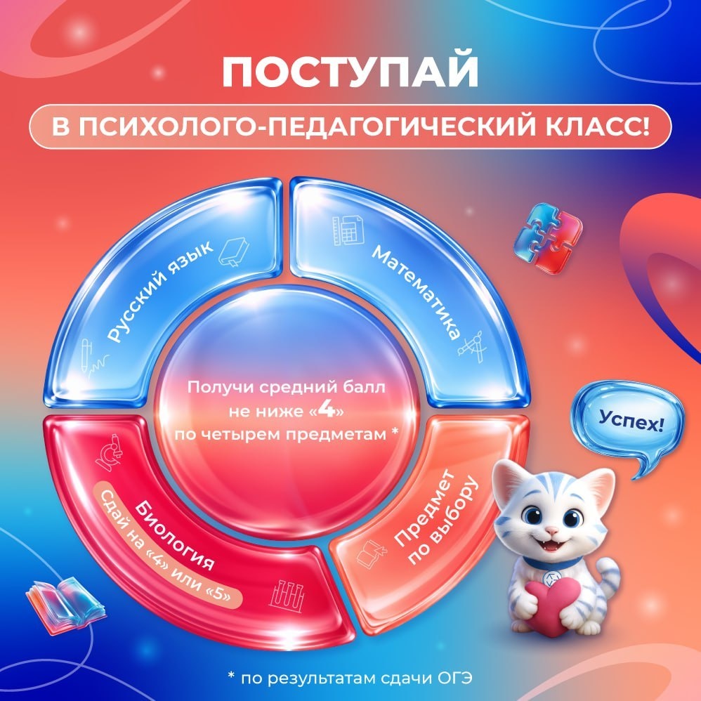 Психологи-консультанты, детские психологи, бизнес-психологи и даже экстремальные психологи ежедневно заботятся о ментальном здоровье людей. Учеба в психолого-педагогическом классе — это первый шаг в профессиональное сообщество. Выпускники поступают на психологические факультеты ведущих вузов страны, и обучение дается им легко, потому что со школьной скамьи они знакомы с социальной психологией, общей физиологией и современными нейронауками. А еще имеют опыт собственных исследований и понимают, как устроена система психологической поддержки детей и взрослых в городе. Чек-лист шагов девятиклассника для поступления: ✅ Сдать ОГЭ по русскому языку, математике, биологии и любому предмету на выбор ✅ Получить по биологии отметку «4» или «5» ✅ Подтвердить средний балл по четырем предметам не ниже «4» ✅ Выбрать школу с психолого-педагогическим классом на карте и подать заявление Дерзайте, мы вас ждем ❤️ #ДОНМ #Предпрофкласс #ПсихологоПедагогическийКласс1474 #БудущийПсихолог