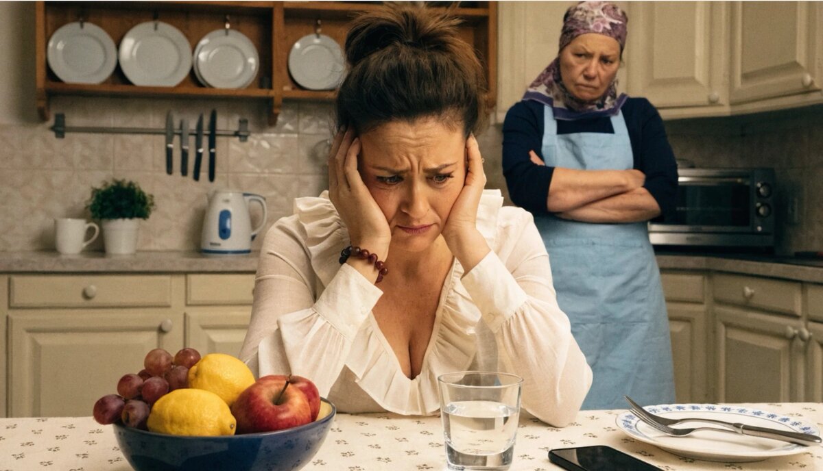 — Ты всё делаешь не так, — заявила свекровь. Голос был ровным, без крика. От этого стало только хуже. — Сухое мясо. Яблоки кислые. И соли пожалела. Как всегда.