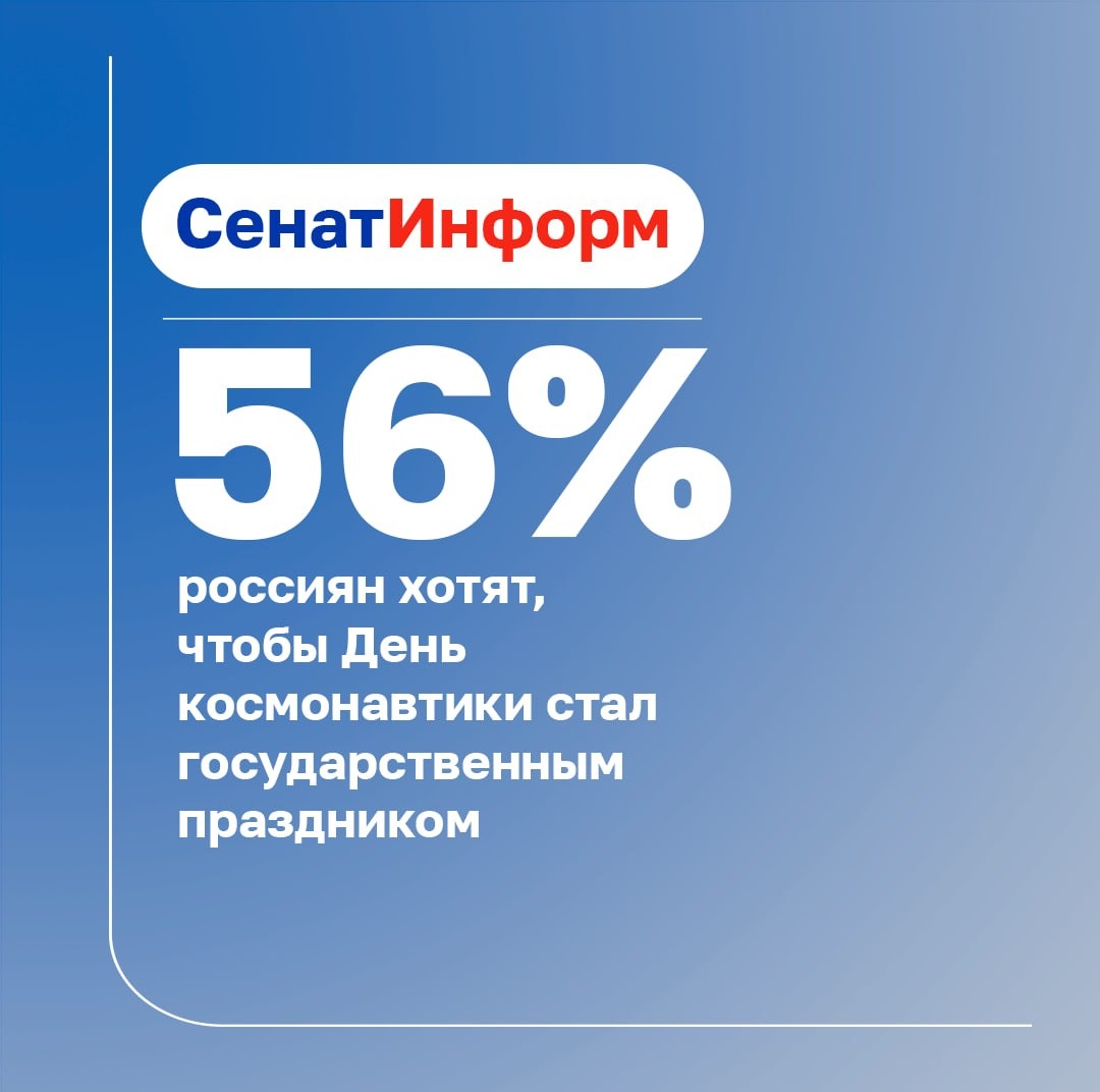 Об этом заявила «СенатИнформ» зампред Комитета СФ по науке, образованию и культуре Екатерина Алтабаева. Большинство россиян поддерживают идею сделать День космонавтики 12 апреля государственным праздником и выходным. Об этом говорится в исследовании сервиса SuperJob. Сенатор выразила сомнение, что введение дополнительного выходного дня действительно необходимо. По её мнению, главное — активно популяризировать достижения российской космической отрасли, в том числе используя праздник 12 апреля. Очень важно, чтобы молодёжь знала о первом космонавте Юрии Гагарине, современных космонавтах и понимала значимость вклада России в космические исследования. Екатерина Алтабаева зампред Комитета СФ по науке, образованию и культуре Согласно опросу, против этой идеи выступили 24%, а каждый пятый не смог определиться. Женщины чаще поддерживают дополнительный выходной (58%), чем мужчины (53%). Молодёжь до 35 лет проявила больше энтузиазма — 64% «за», тогда как среди 45+ — только 43%. 📲 Подробнее