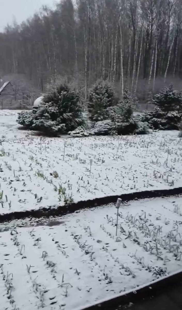 Сад припорошило снегом. Не унываем, весна идёт, весне дорогу! 🙂