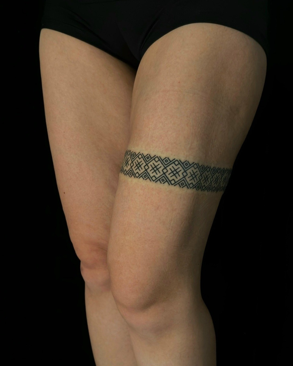 Небольшая, но выразительная татуировка‑подвязка. Выполнена мастером Кириллом с использованием картриджей Noir — минималистичный или детализированный дизайн на выбор.