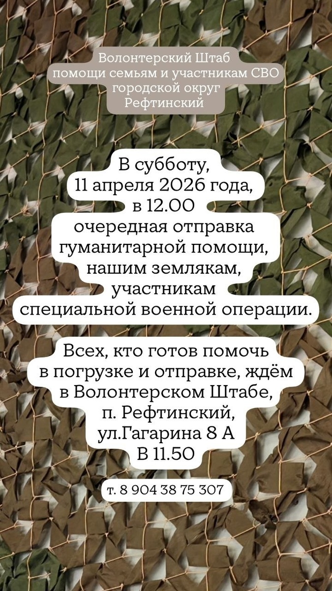89043875307 Елена Евлентьева Принести гуманитарную помощь для участников СВО можно в будние дни с 10.00 до 18.00 в Волонтерский Штаб, го Рефтинский, ул. Гагарина 8 А, или в Центр молодёжи, ул. Юбилейная 3/1 ( в выходные прошу предварительно согласовать с Евлентьевой Е. В. т. 89043875307) #ЦентрМолодёжиРефтинский #МыВместе #Рефтинский #дариДоброРефтинский #СвоихНеБросаем196 #всеДляПобеды #ЕР196