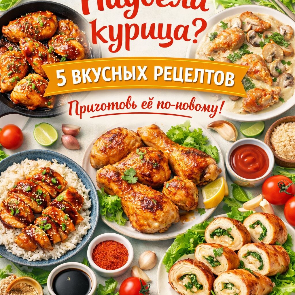 Курица — один из самых популярных продуктов: доступная, диетическая, быстро готовится. Но давай честно — варёная грудка и банальное филе на сковороде рано или поздно надоедают. Если ты уже не можешь смотреть на «обычную курицу», вот 5 реально вкусных и необычных рецептов, которые вернут к ней любовь ❤️ ⸻ 1. Курица в медово-чесночной глазури Вкус: сладко-солёный, с лёгкой пикантностью Ингредиенты: