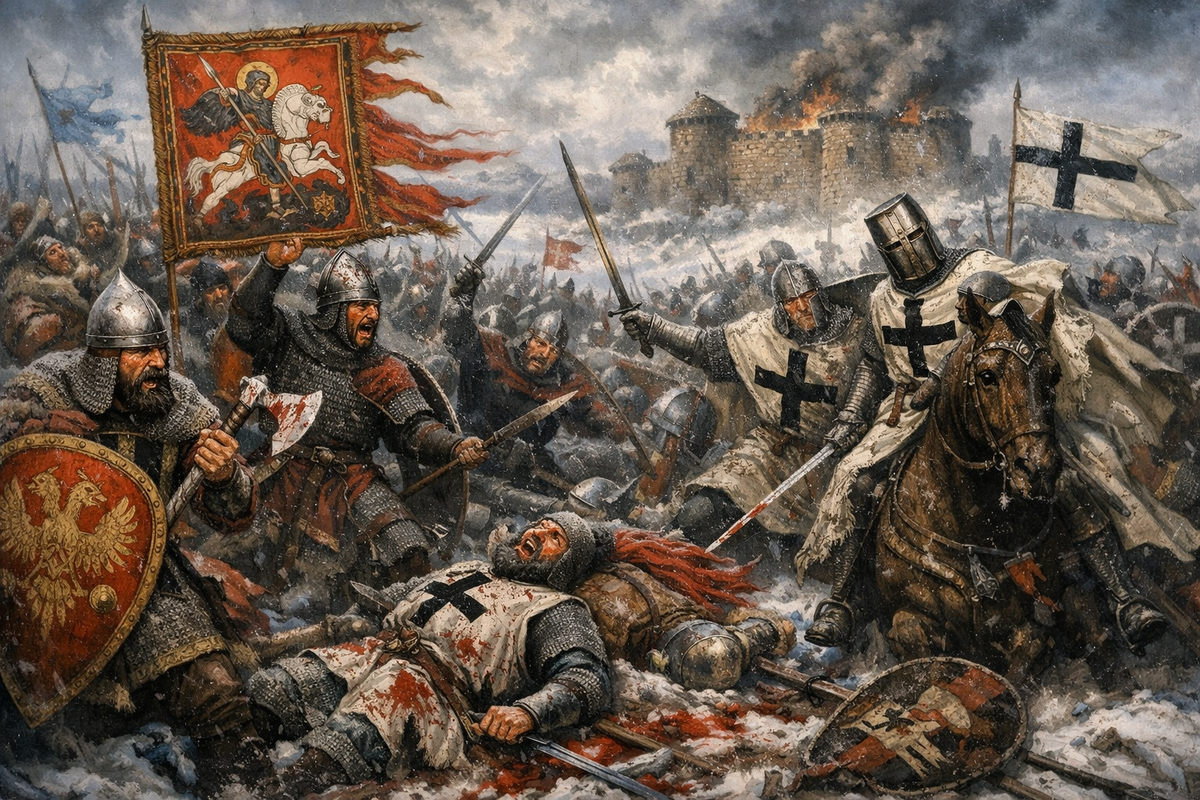 Битва при Раковоре (18 февраля 1268 г.) относится к той же категории незаслуженно забытых, хотя её масштаб и ожесточённость превосходили знаменитое Ледовое побоище. В Новгородской летописи сказано: «Ни отцы, ни деды наши не видали такой жестокой сечи». Потери сторон исчислялись тысячами профессиональных воинов — по меркам XIII века это колоссальные цифры.