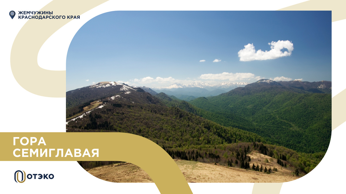 Где рождаются облака? Там, где земля встречается с небом. И если вы хотите побывать в этом великолепном месте — отправляйтесь на гору Семиглавая, одну из настоящих жемчужин Краснодарского края. Это самая северная вершина города Сочи, и она неспроста имеет такое название. Ведь это целый гребень из семи пиков, расположенных на протяжении четырёх с небольшим километров. Самая высокая точка массива — 1453 метров. Отсюда открываются фантастические виды на Чёрное море, хребты Горячего Ключа и заснеженные шапки Лагонакского нагорья. Впрочем, Семиглавая имеет и другие названия. Её также именуют горой Кашина в честь инженера-геодезиста, который работал над созданием карт этого региона. Другое имя — Лысая — гора получила, вероятно, потому что с отметки 1200 метров она украшена не лесами, а великолепными альпийскими лугами. Память С гребня видна линия фронта времен Великой Отечественной войны, ведь в 1942 году здесь шли ожесточенные бои за Туапсе. И до сих пор сохранились памятники и окопы тех ле