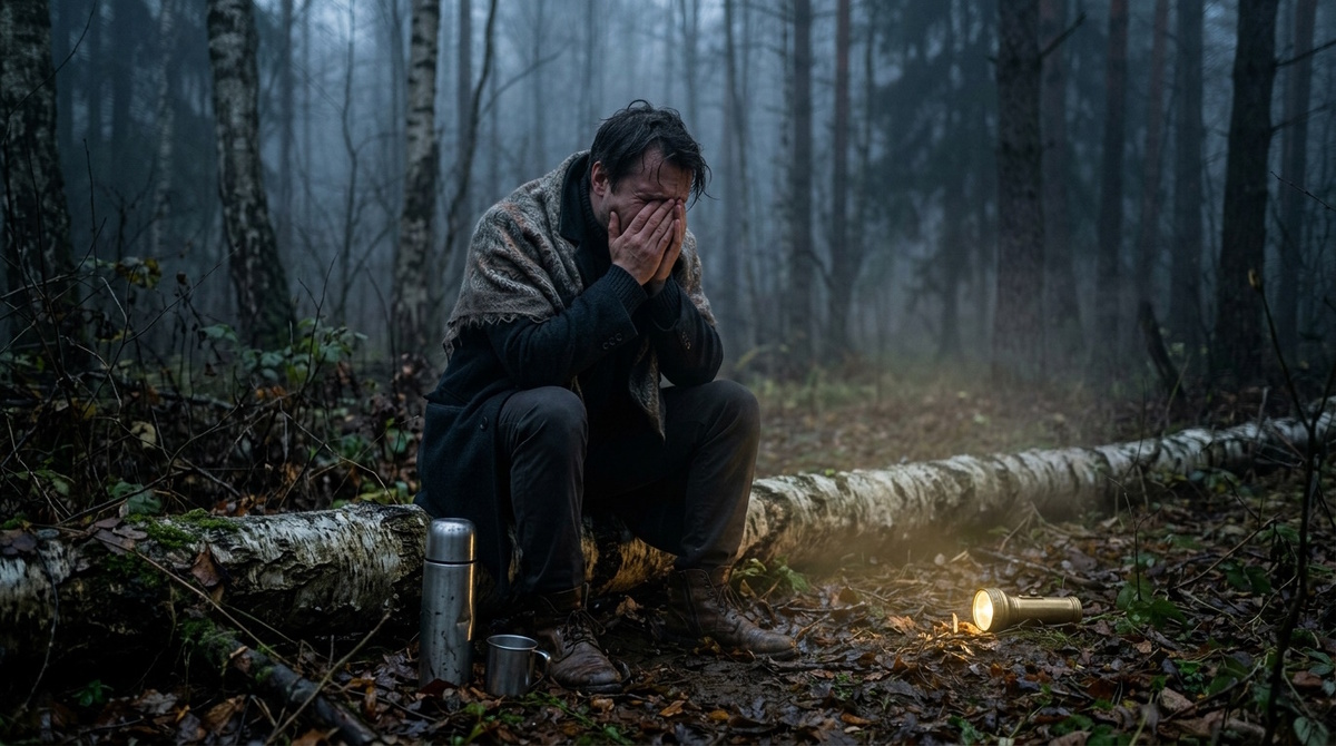 Сидит на поваленной березе человек. Сжался весь в комочек. Пальто его модное грязью измазано, подол порван. Руками голову обхватил, и плечи трясутся. Телефона его нигде не видно - поди, выронил в темноте.