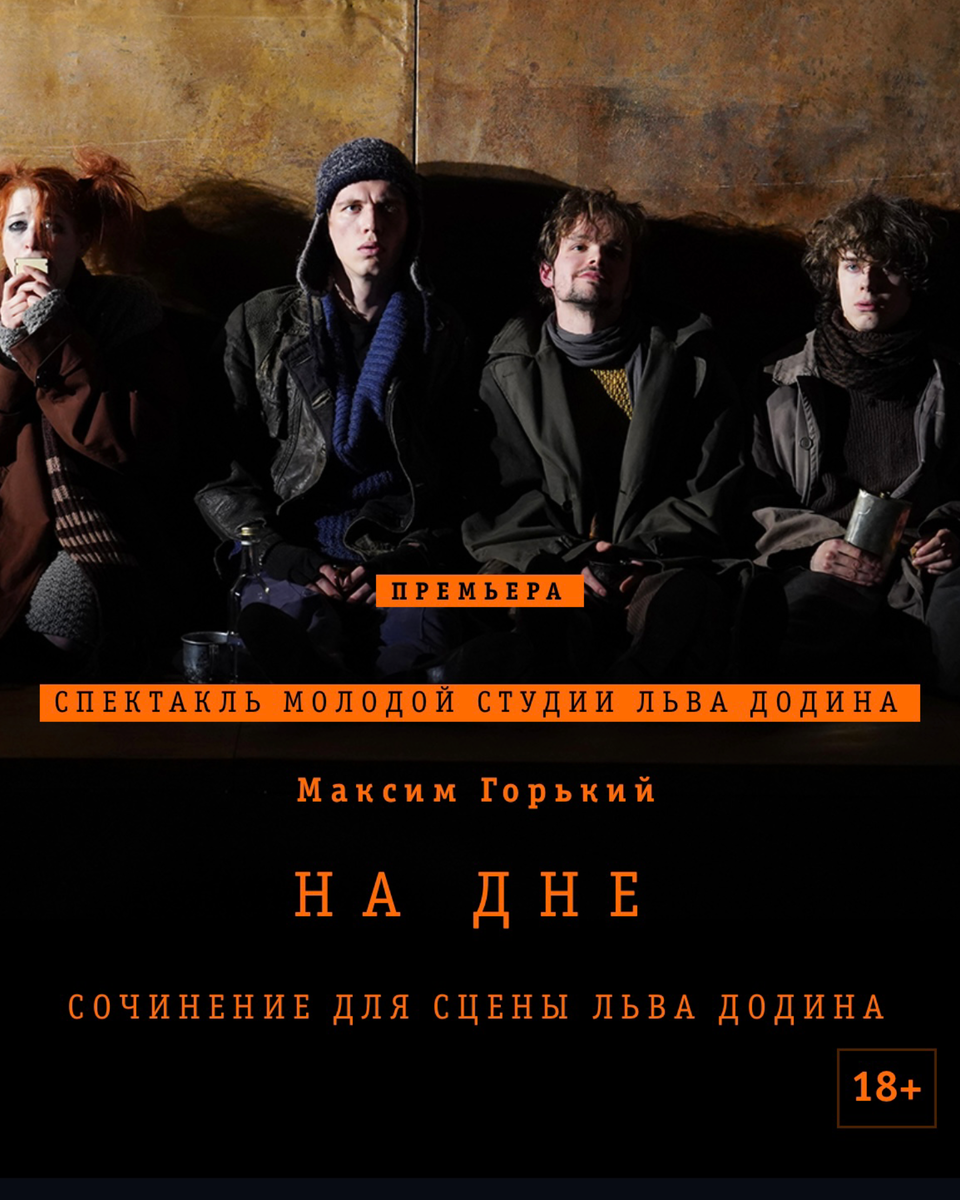 «На дне» Горького — уже третья работа, за которую взялся Лев Абрамович, все сильнее погружая вчерашних выпускников театральной академии в пространство большой сцены легендарного, прославленного МДТ. В спектакле участвуют 11 ребят, которые в течение полутора часов отлично держат зрительское внимание, увлекают, убеждают, тревожат и даже временами веселят. Но ни в коем случае не позволяют скучать, как скучает, к примеру, Пепел (в пьесе — Васька Пепел), выгоревший персонаж Алексея Тезикова, который буквально сбивает с ног своей уверенностью и жесткостью. Его очевидный мощный талант — очень серьезная заявка на крупные, главные роли.