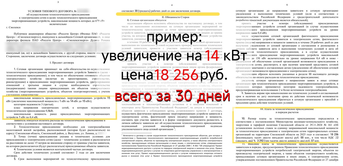 Всего за 30 дней и всего за 18 000 рублей увеличили мощность на 14 кВт ⚡ Пример работ: 📍Местонахождение данного объекта: Смоленская обл., д. Валутино. Сетевая организация: ПАО "Россетти Центр"-"Смоленскэнерго" Требуемая мощность: 15 кВт, увеличение мощности. Сроки исполнения: 30 рабочих дней. ☎️ Способы связи: 📞+7(911)280-02-64 Александр Оставить заявку на подключение, заключение договора или на консультацию вы можете здесь или на наших сайтах: 👉ВКонтакте - vk.com/lek198 👉Телеграмм канал - t.me/LEK198 ✅Просто напишите в личных сообщениях Ваш номер телефона и мы вам перезвоним.