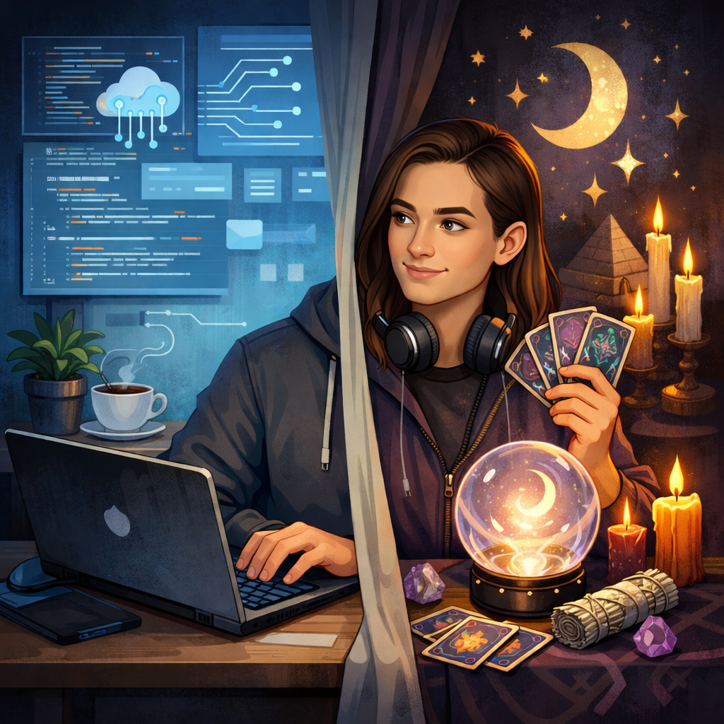 У меня сложилась следующая ситуация, я работаю в ИТ и в целом как-то даже не думаю о том, чтобы менять профиль своей деятельности, мне все нравится так, как есть. В моем кругу знакомых я о своём занятии эзотерикой не распространяюсь, ну и естественно никаких клиентов нигде не ищу, только по мелочи могу что-то делать для себя, ну и изучаю все, что под руку попадает. Обо мне в таких вопросах знает только два человека, мать, да любимый человек.
