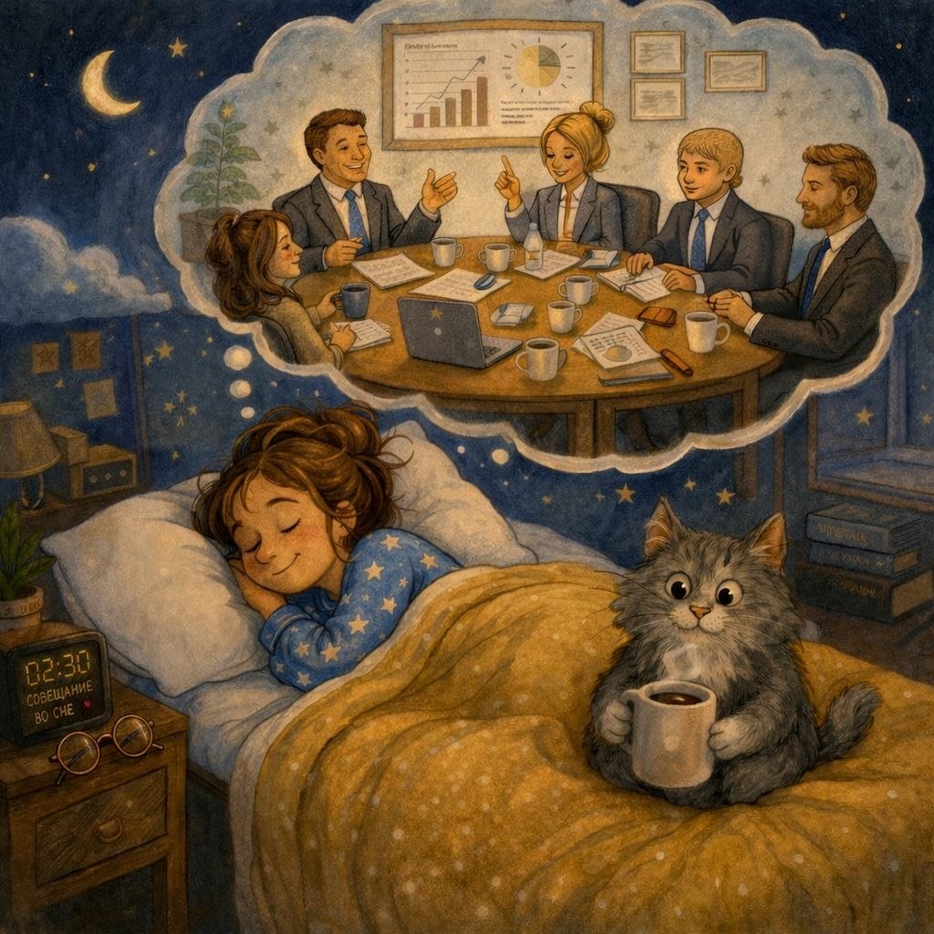 Когда днём нет времени и все созвоны приходится переносить на ночь. Задание 776: Напишите микро-рассказ из 7 слов или меньше (или больше), на тему "Конференция во сне". Свои варианты подарков пишите в комментариях к этому посту. Также на всякий случай даём прямую ссылку на чат https://t.me/litclubbs_flood *** Предложить свою тему для марафона можно сюда @yaroshdobryi