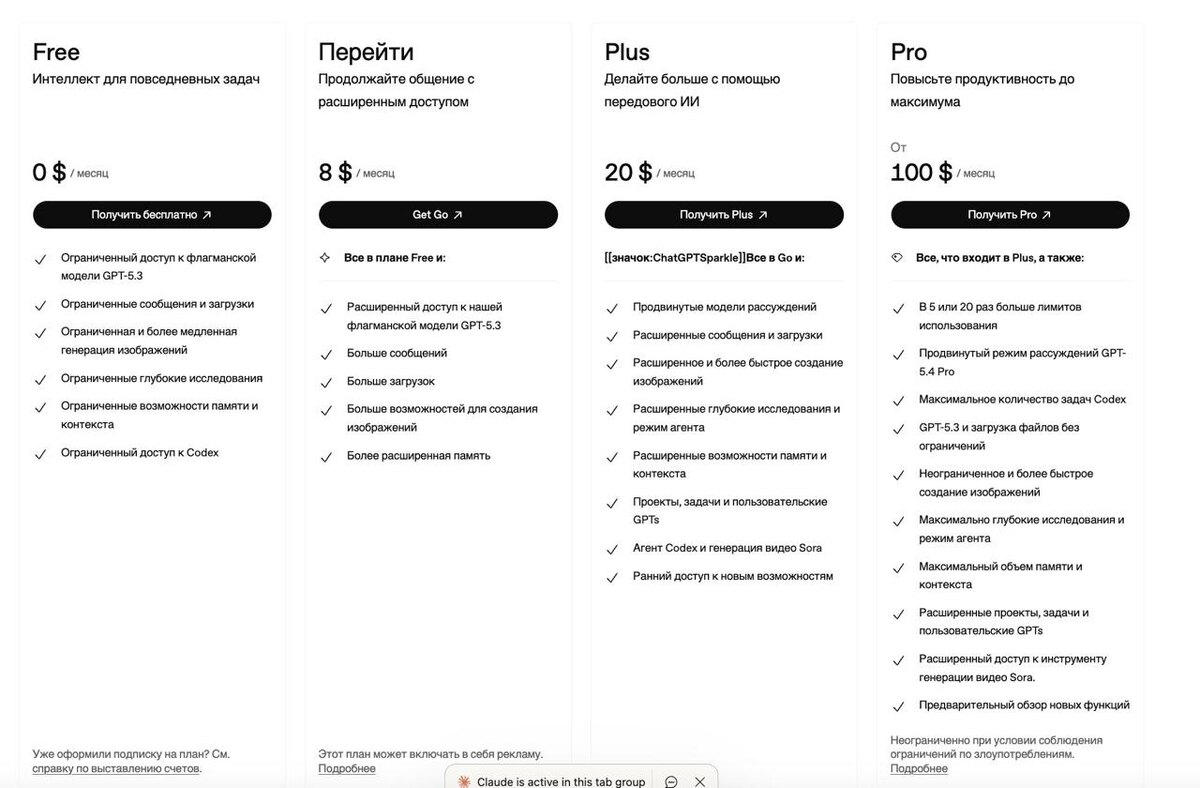 Появился новый тариф Pro за $100 в месяц, заточенный под Codex. По словам компании, он дает в 5 раз больше лимитов на Codex по сравнению с Plus и рассчитан на длинные, ресурсоемкие сессии. Все существующие фичи Pro никуда не делись: эксклюзивная Pro-модель, безлимитный доступ к Instant и Thinking моделям. До 31 мая подписчикам нового Pro дают до 10x использования Codex относительно Plus - чтобы люди могли распробовать и привыкнуть. А вот для Plus-подписчиков новости менее радужные. Промо-период с расширенным доступом к Codex закончился, и OpenAI ребалансирует лимиты: теперь упор на больше коротких сессий в течение недели вместо длинных марафонов за один день. По сути, если вы активно пользовались Codex на Plus и вам хватало - готовьтесь к тому, что лимиты стали жестче. OpenAI прямо говорит, что Plus за $20 остается лучшим вариантом для повседневного использования, а для тяжелой работы с Codex теперь нужно переходить на Pro. https://chatgpt.com/ru-RU/pricing/ @machinelearning #ope