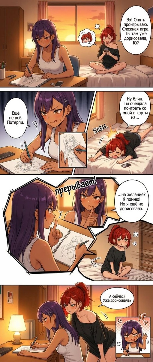 🧨 МОЩ! Второй день "Запутались мизинцы..." висят на главой в "Сейчас читают ->" на Ранобэлиб! 📔 В честь этого знаменательного достижения делимся мини-историей в формате комикса. Читателям будет интересно посмотреть визуализацию динамики между Юдзу и Сарой;) 💖 Спасибо вам еще раз!