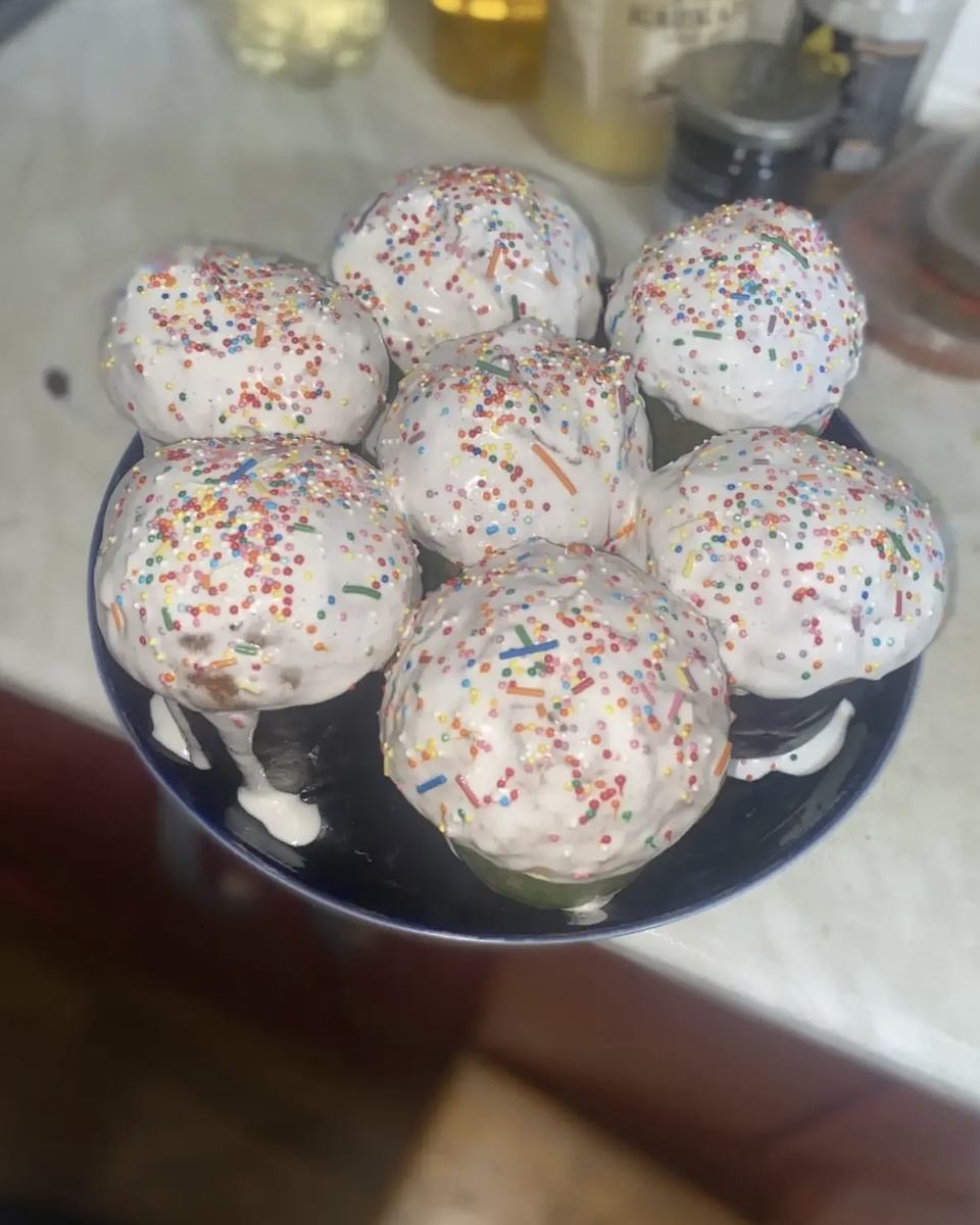 Лизавета печёт их уже который год по одному и тому же рецепту — и они всегда прекрасны! Воздушные, ароматные, с изюмом и воздушной белоснежной шапочкой... В этом году у нас тройная порция: семья‑то большая, и каждый ждёт своего кусочка праздничного кулича, а некоторые и от целого кулича не откажутся)))