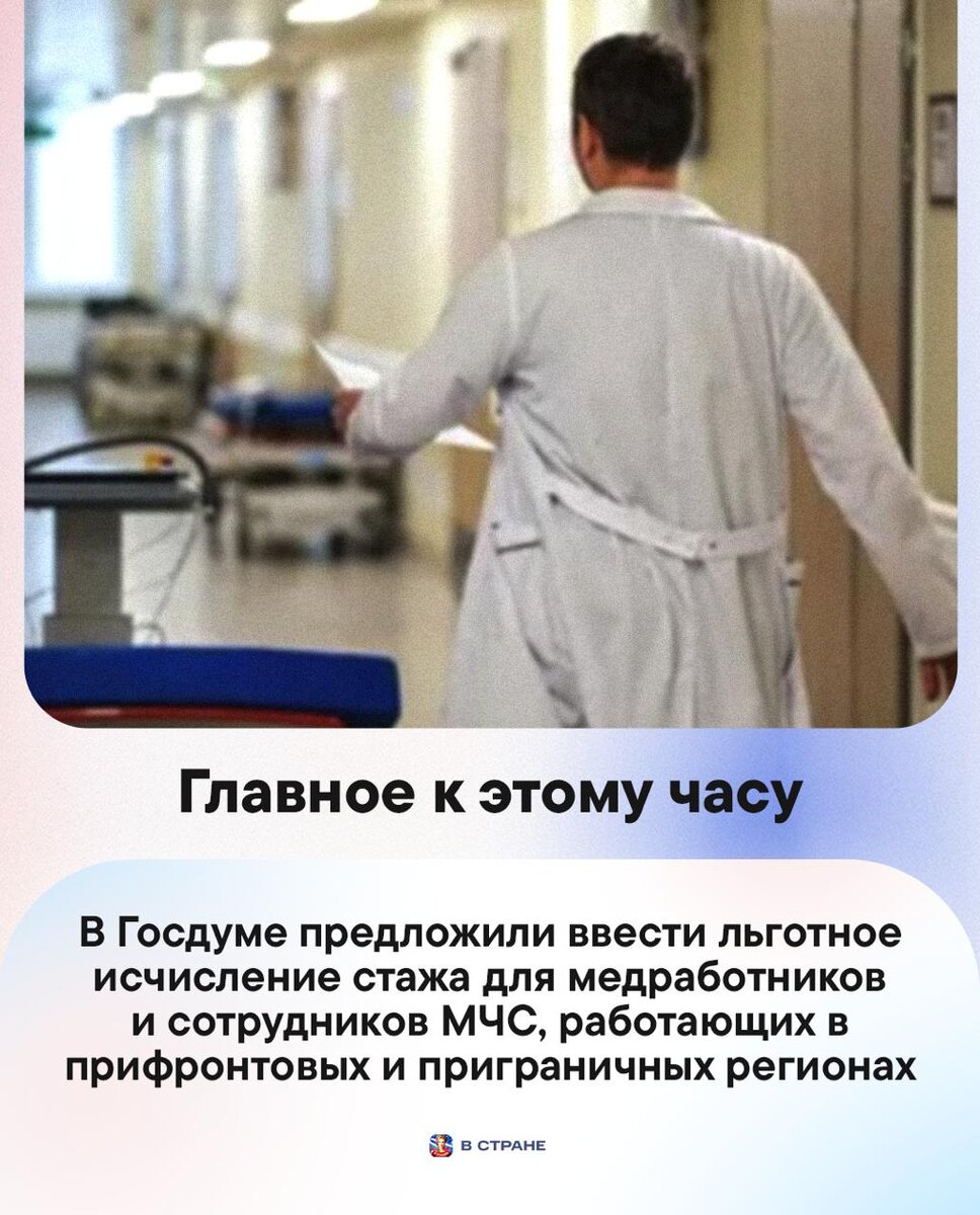 : 🔹В Госдуме предложили ввести льготное исчисление стажа для медработников и сотрудников МЧС, работающих в прифронтовых и приграничных регионах. 🔹Путин подписал закон о наказании за отрицание и одобрение геноцида советского народа во времена Великой Отечественной войны. 🔹Путин поручил доработать систему возмещения ущерба гражданам, которые стали жертвами мошенников. 🔹Напавший на пенсионеров в Кисловодске всадник на лошади получил 4,5 года колонии. 🔹В Муроме сообщили о 106 случаях острой кишечной инфекции, 50 человек госпитализировано, из них 25 детей. 🔹Заполнение ИНН при переводах по СБП станет обязательным с 1 июля. 🔹Режим ЧС федерального уровня установлен в пострадавших от наводнения Дагестане и Чечне. ✅ «В Стране» в MAX