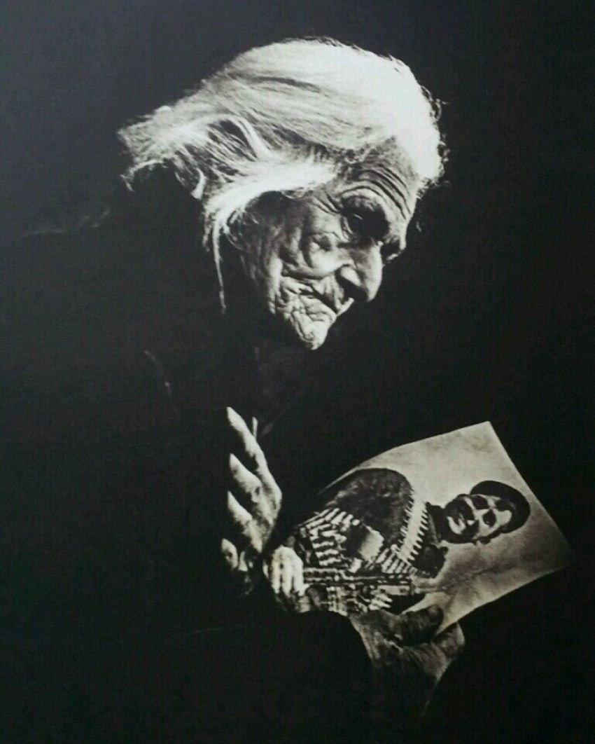 Другое название у фото — «Свидание с сыном через 20 лет. Это снимок советского фотокорреспондента газеты «Правда» Семена Короткова. Он сделал его в Крыму в мае 1942 года: «Я сфотографировал бравого морского пехотинца с красивой улыбкой, грудь которого перепоясывали пулеметные ленты, а за поясом торчала граната. Он был родом из Абхазии. Но группа шла в бой, спросить имя и фамилию бойца я не успел. А на другой день узнал, что группа не вернулась, все ребята погибли». После этого он 20 лет искал семью бойца, чтобы передать родственникам его портрет: «И однажды поиски привели меня в горное село неподалеку от города Ткуарчала. Большой абхазский двор, дом в глубине. Из дома вышла очень пожилая женщина, маленькая, худенькая, совершенно седая, подошла к забору. Маруща Аршба. Я протянул ей снимок. То, что я увидел, меня потрясло. В мгновение женщина изменилась. В ее глазах и скорбь о погибшем сыне, и радость от свидания с ним, каким она его никогда не видела — в форме морского пехот