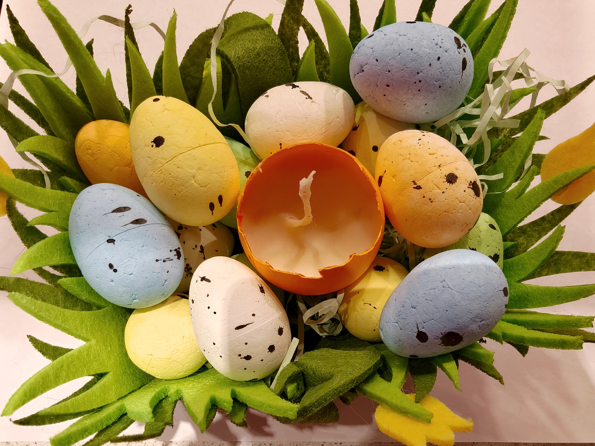 Для изготовления свечки, кроме непосредственно яиц, понадобится краска, уксус для закрепления цвета, воск и фитиль.