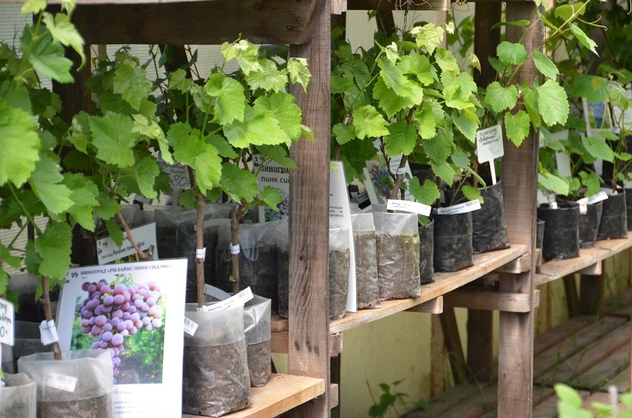 Пока на улице ненастно и время посадки винограда ещё не подоспело, ухаживаем за молодым саженцем дома, поставив его к окну или на балкон. Температуру воздуха при этом держим в районе 20°С. Растение поливаем не чаще одного раза в две недели, опрыскиваем саженец от паутинного клеща и грибковых заболеваний специальными препаратами. Для посадки годовалого саженца в открытый грунт температура почвы должна быть прогрета до +15 +18°С. Ориентиром может быть время, когда берёза покрывается распускающейся листвой. Место для посадки нашего юного красавца должно быть хорошо освещаемо и защищено от северных ветров. Виноград сажаем на 30 см глубины, яма же чуть глубже - на 10 см. Выкопанную землю можем перемешать с речным песком. До посадки саженца наполняем яму 10-15 см слоем получившейся пористой и рассыпчатой земли. Затем погружаем саженец и аккуратно присыпаем землю, прижимая сверху, чтобы не было пустот у корней, добавляем фосфорно-калийные удобрения и досыпаем оставшуюся землю до уровня первой