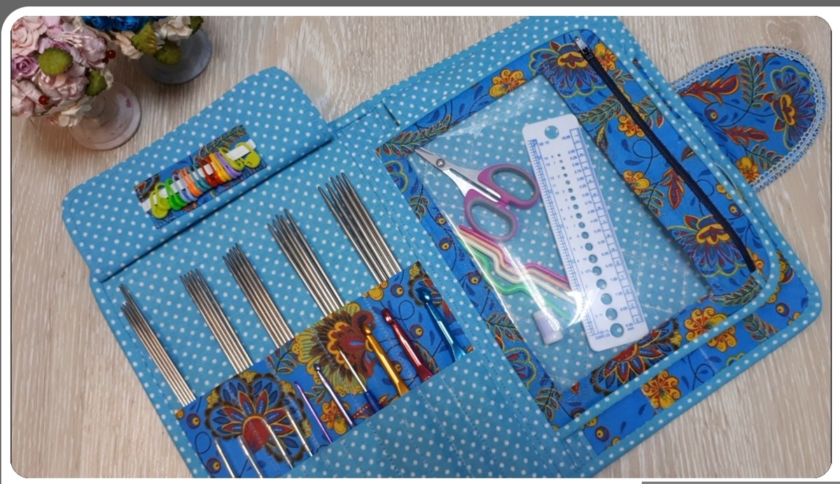 Раньше я писала о пенале для своих спиц. И показала пенал, в котором храню крючки. Я хотела шить пенал для спиц — "рукодельница ли я или кто?". Но не было времени на шитье. Вязала носки с квадратами, шила лоскутные блоки. — А какой пенал вы хотели шить? Вот пример. Источник Автор Юлия Жданова. Вместительный органайзер для спиц, крючков и вязальных принадлежностей. — Очень красивый пенал! Аккуратный! — А для спиц на леске? Вот. Большой пенал на молнии. Очень большой, не меньше полметра. Похоже на самошитую косметичку с карманами. Или вот более компактный пенал для тех же спиц. Мне понравился, хотела шить. — Есть ли выкройка и описание шитья этого пенала? Не нашла. И не хотелось терять время на эксперименты, на черчение выкройки, на попытки шить... Автор oksana fia. Источник Выкройка и описание. — Это из какого журнала? Не знаю. Нашла в Пинтересте. Простой вариант пенала-рулона для крючком. Для любителей пеналов-рулонов. — Я видела тряпичный пенал для цветных карандашей. Подходит ли