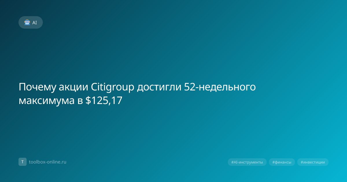 Акции Citigroup достигли 52‑недельного максимума на уровне $125,17 12 марта 2026 года — это рост на 8 % за последний месяц и показатель, который привлёк внимание как розничных, так и институциональных инвесторов. Такой скачок цены обусловлен укреплением финансового сектора США и успешным внедрением новых AI‑технологий в банковские процессы. По данным Bloomberg, объём торгов превысил 1,2 млн акций, а общий оборот составил более 150 млн долларов. Акции Citigroup выросли благодаря сочетанию нескольких факторов: росту процентных ставок, улучшению кредитных рейтингов и внедрению AI‑инструментов для управления рисками. Банковская сеть увеличила доходность по кредитным портфелям на 3,5 % в годовом исчислении, а автоматизация процессов сократила операционные издержки на 12 %. Инвесторы предпочитают Citigroup за стабильный дивидендный доход и потенциал роста, подтверждённый 52‑недельным максимумом. Дивидендная доходность составила 2,4 % и выплата была увеличена до $0,55 за акцию. Если вы планир
