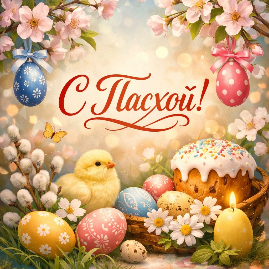 Поздравляю с Пасхой! Желаю тебе, чтобы в твоём доме всегда царил тот самый пасхальный дух: радостный, светлый и немного... ароматный от выпечки. Пусть твои близкие радуют тебя не только крашенками, но и вниманием, а твои друзья — не только куличами, но и поддержкой. И чтобы все твои «яйца» (в смысле, планы и проекты) были в целости и скоро дали прекрасные всходы.