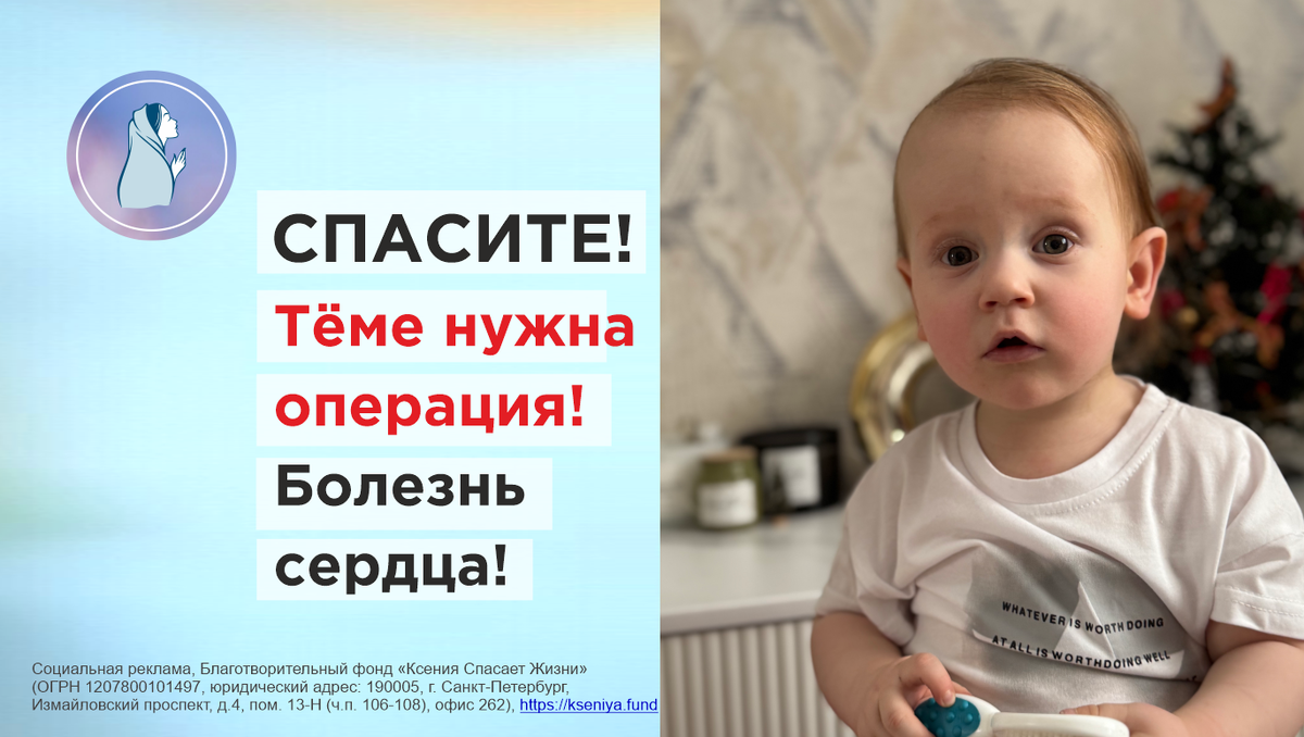 Диагноз звучит как приговор: смертельно опасные аномалии сердца. СПАСИТЕ! Артём Погорелов, 1 год Сегодня мы хотим познакомить Вас с новым подопечным. Он совсем крошка. И очень обаятельный мальчик. Его зовут Артём. И без срочной операции малыш может не дожить и до подросткового возраста. Прогноз без радикальной операции трагичен: порог выживаемости до пересадки сердца — 20–30 лет, а после неё жизнь может продлиться лишь 10–13 лет. Это жестокая правда для мамы и самого крохи. Хотя он этого ещё не понимает. Только плачет от боли и страха. Но у Тёмочки есть надежда на спасение! И надо спешить, чтобы он её получил. Клиника Ospedale del Cuore (Италия) готова провести радикальную коррекцию сердца — сложнейшую операцию, которая может стать последней в жизни Артёма. После неё он сможет расти, играть, ходить в школу — как обычный ребёнок. Подарите Тёмочке жизнь! Прогноз маленького Артёма пугает. Всего 20–30 лет до пересадки сердца. А после неё — ещё 10–13 лет. Получается, даже в лучшем случае жи