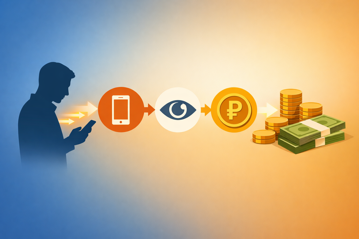 Есть один факт, после которого лично у меня слегка поехала крыша. Среднестатистический россиянин проводит в социальных сетях около трёх часов в день. Это – двадцать один час в неделю. Примерно девяносто часов в месяц. Больше двух рабочих недель. Каждый месяц. Из года в год. И всё это время кто-то очень конкретный очень конкретно зарабатывает деньги. Пока вы листаете. Я не пытаюсь вас пристыдить. Я сам такой. Был. Пока не разобрался, как именно устроена эта история изнутри. Любая крупная платформа: Ютуб, ВКонтакте, ТикТок, существует на деньги рекламодателей. Бизнес платит площадке за то, чтобы его товар увидел живой человек с живыми глазами. Платформа, в свою очередь, делает всё возможное, чтобы этот живой человек провёл перед экраном как можно больше времени. Для удержания вашего внимания работают целые отделы маркетологов, психологов и инженеров с зарплатами, о которых большинство из нас мечтает. Они не дремлют. Они очень хорошо делают свою работу. Теперь вопрос: а кто создаёт конте