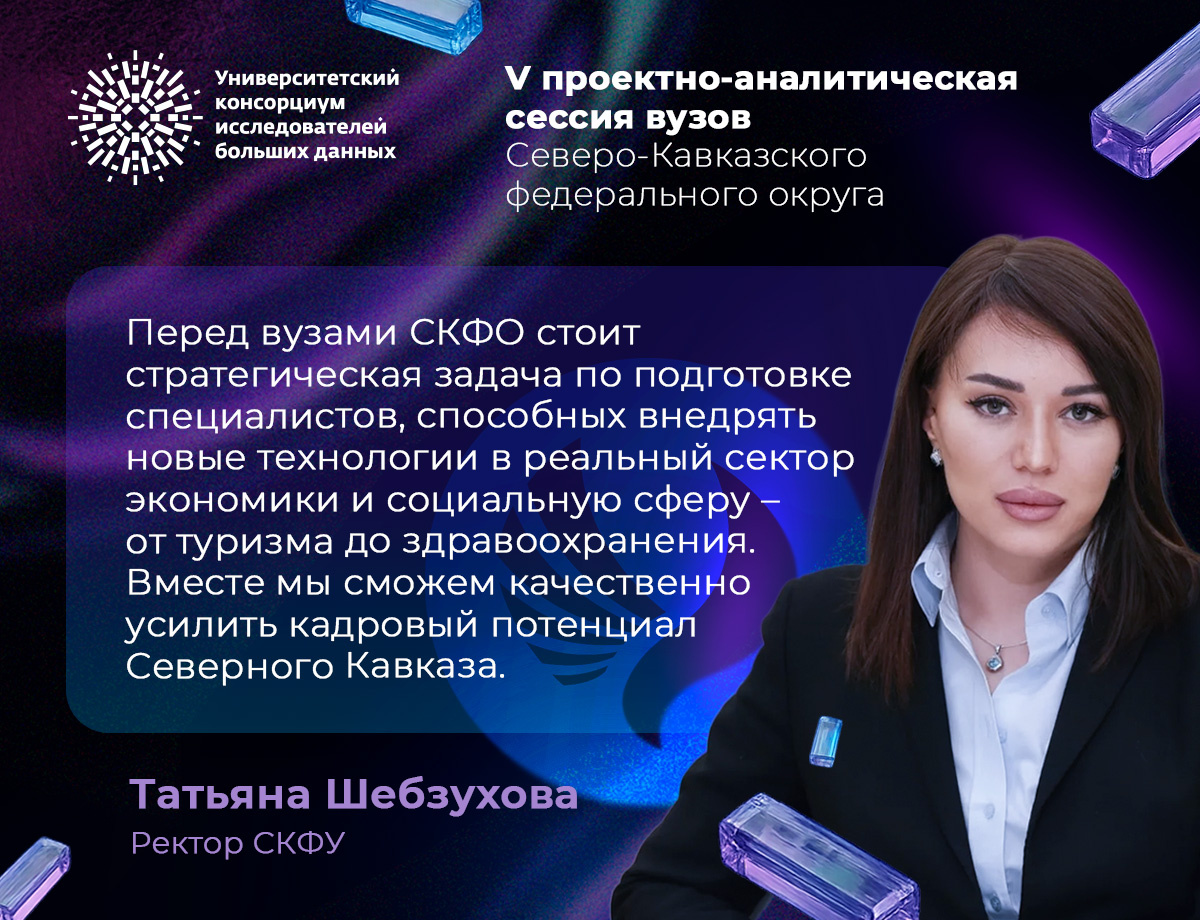 Северо-Кавказский федеральный университет (СКФУ) станет площадкой для V проектно-аналитической сессии вузов Северо-Кавказского федерального округа, которую проведет Университетский консорциум исследователей больших данных (Консорциум Big Data). Мероприятие будет проходить в двух городах: 15 апреля — в Ставрополе, 16 апреля — в Пятигорске. Участие в сессии бесплатное, но нужна предварительная регистрация на сайте https://opendata.university/passkfo Проектно-аналитические сессии для вузов СКФО Консорциум Big Data проводит с 2022 года. На этих мероприятиях обсуждают новые технологии для сферы образования и подготовки кадров. «Перед вузами Северо-Кавказского федерального округа стоит стратегическая задача по подготовке специалистов, способных внедрять новые технологии в реальный сектор экономики и социальную сферу – от туризма до здравоохранения. Северо-Кавказский федеральный университет, как опорный вуз макрорегиона, последовательно решает эту задачу и готов транслировать свой опыт. Мы ра