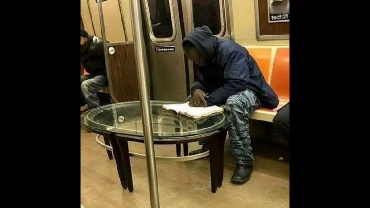 Метрополитен требует от своего подземного мира соблюдения особых порядков. Пассажиры, которые любят ездить на работу в метро, а не в лимузине, обладают повышенным чувством юмора. Для них и остальных людей, создается подборка забавных ситуаций, чтобы самые хмурые пассажиры, сдвинули в сторону бытовую рутину и привыкли улыбаться. Заметить странных попутчиков не сложно, они выделяются несуразным видом, своими нарядами кричат окружающим: « ну обратите внимание на нас, для вас старались». №1. Любит инопланетянин собирать информацию с бумажных носителей, изучает древнюю цивилизацию, как обитатели вселенной свободно обходились без гаджетов, оторваться внеземной ученый не может от книги в подземном царстве. №2. Бравый мотогонщик поставил свой байк на техосмотр, по чистой случайности пассажиры могут оценить уникальный наряд гонщика, которого ждет великое будущее. №3. «Оригинальный макияж и отличная защита от инфекции»– подумал вирусолог, натянув на лицо пластиковую бутылку, сохранил свой бюдж
