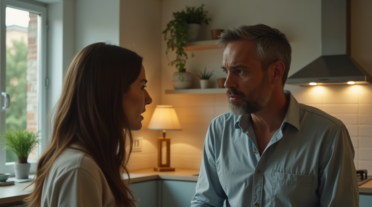 Сергей сидел за столом, откинувшись на стуле. Его лицо было серьёзным, даже строгим, как будто он давно всё обдумал и теперь просто ставил её перед фактом.