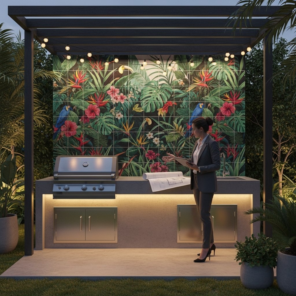 🎨 Клиент хочет «что‑нибудь вау», но боится цвета? Знакомо 😏 Когда тропический сад, птицы и живой цвет остаются только в мудборде, согласование тянется бесконечно. А вот когда клиент видит фотоплитку на керамограните прямо в своей будущей BBQ‑зоне — с рабочей столешницей, теплым светом и панно у гриля — сомнений резко меньше. Визуализация показывает не абстрактный узор, а готовый характер пространства: вместо мрамора и банальных принтов — продуманное панно с атмосферой и практичностью. Так проще защитить смелое решение и не возвращаться к «давайте что‑нибудь поспокойнее». Если хотите так же спокойно согласовывать яркие панно с заказчиками — загляните на https://phototile.ru и оставьте заявку.#фотоплитка #дизайнинтерьера #дизайндлядома #уличнаякухня #панноизплитки #керамогранит #визуализацияпроекта #больдизайнера #дизайнпроект #летняякухня #зонабарбекю https://phototile.ru