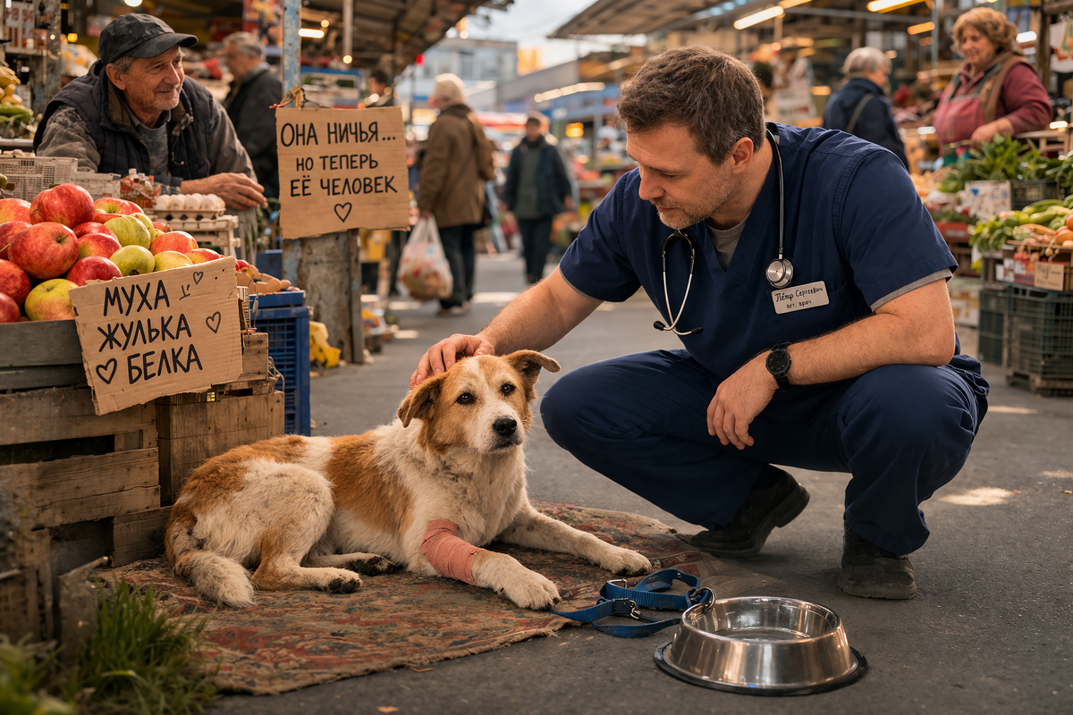 — Пётр Сергеевич, вы не могли бы заехать? Тут собака… хромает сильно. Рыночная. Жалко.